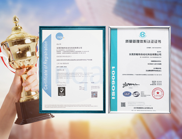 苏敏特在2014年获得国际标准规格ISO9001认证,2017年获得国际ISO13485医疗器械质量管理体系认证。
